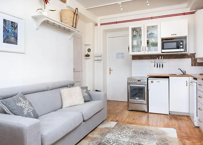 - ❓¿Hay una cocina disponible en este apartamento para uso de los huéspedes?Sí, este apartamento está equipado con una pequeña cocina y ofrece también un lavavajillas y una nevera.